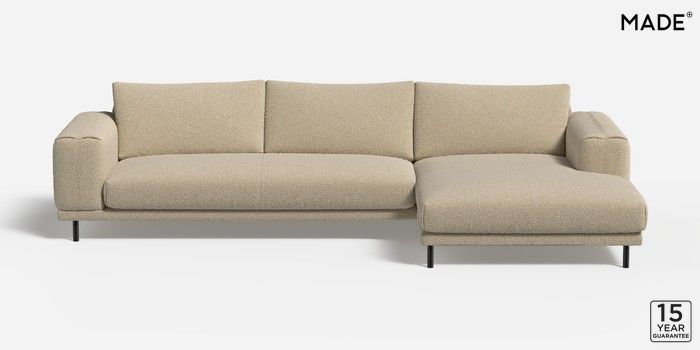 7.2.4 Odin by Made Medium Sofa Chaise - Right Hand Tonal Boucle Natural Oatmeal Skinny - Black | Made Click here to use our website with more accessibility support, for example screen readers