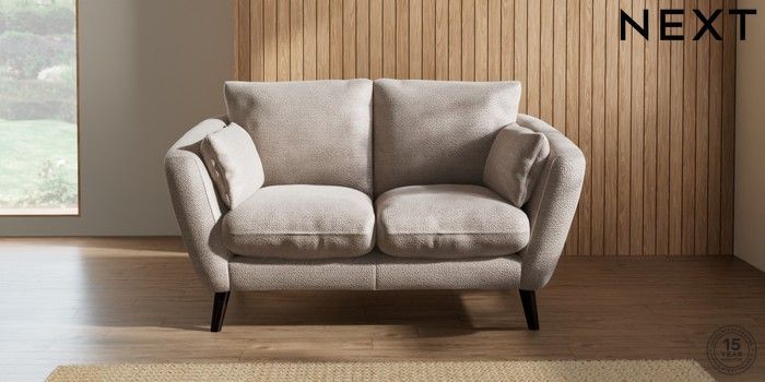 7.2.10 Orlo Relaxed Sit 2 Seater Small Sofa Boucle Chenille Light Natural Retro Tapered - Dark | Made Click here to use our website with more accessibility support, for example screen readers