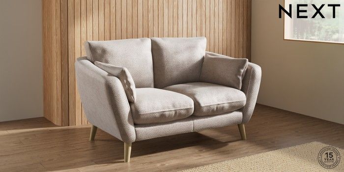 7.2.10 Orlo Relaxed Sit 2 Seater Small Sofa Boucle Chenille Light Natural Retro Tapered - Light | Made Click here to use our website with more accessibility support, for example screen readers