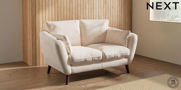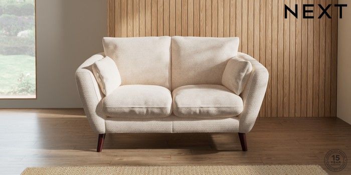 7.2.10 Orlo Relaxed Sit 2 Seater Small Sofa Boucle Chenille Oyster Retro Tapered - Dark Brown | Made Click here to use our website with more accessibility support, for example screen readers