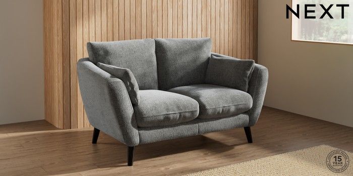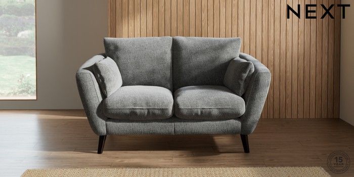 7.2.10 Orlo Relaxed Sit 2 Seater Small Sofa Chunky Chenille Dark Grey Retro Tapered - Dark | Made Click here to use our website with more accessibility support, for example screen readers