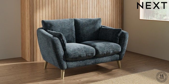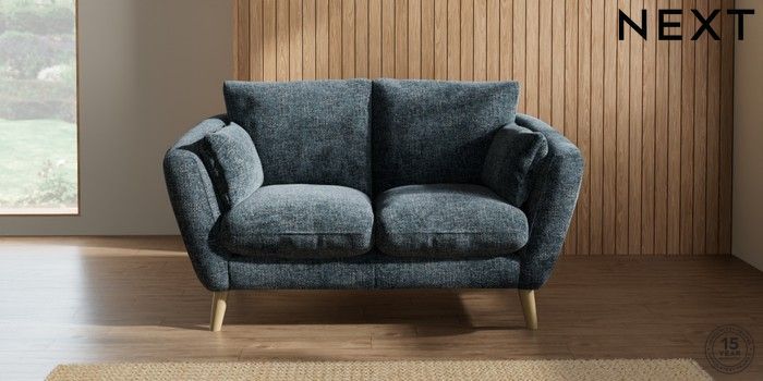 7.2.10 Orlo Relaxed Sit 2 Seater Small Sofa Chunky Chenille Dark Navy Blue Retro Tapered - Light | Made Click here to use our website with more accessibility support, for example screen readers