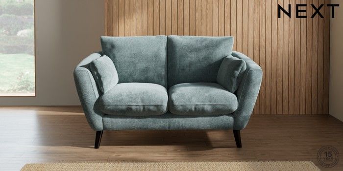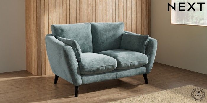 7.2.10 Orlo Relaxed Sit 2 Seater Small Sofa Chunky Chenille Light Teal Green Retro Tapered - Dark | Made Click here to use our website with more accessibility support, for example screen readers