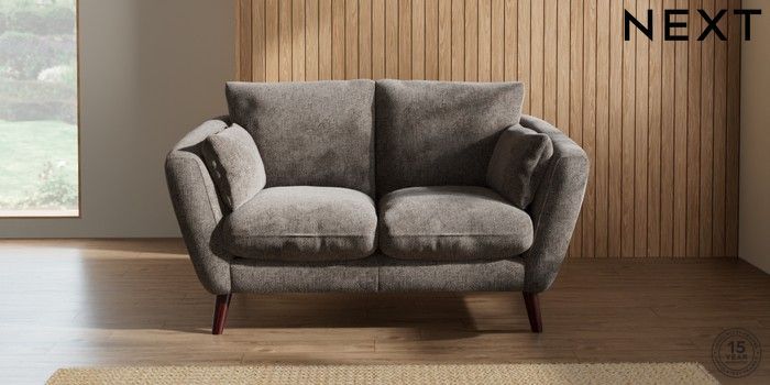 7.2.10 Orlo Relaxed Sit 2 Seater Small Sofa Chunky Chenille Mink Brown Retro Tapered - Dark Brown | Made Click here to use our website with more accessibility support, for example screen readers