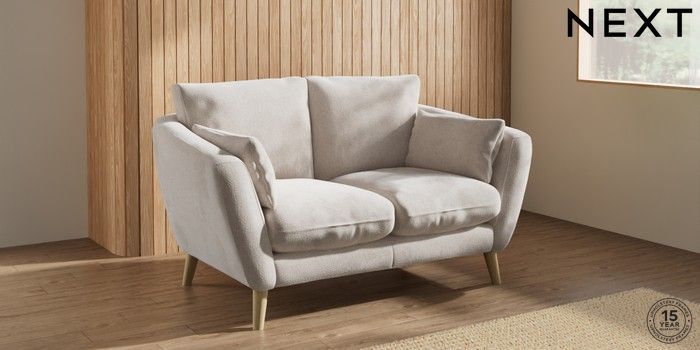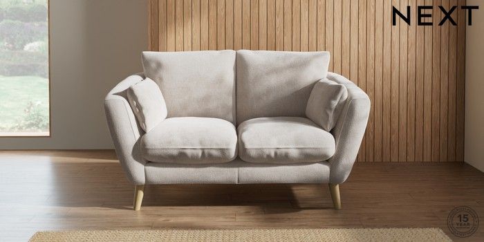 7.2.10 Orlo Relaxed Sit 2 Seater Small Sofa Chunky Chenille Oyster Retro Tapered - Light | Made Click here to use our website with more accessibility support, for example screen readers