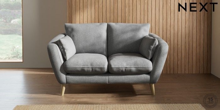 7.2.10 Orlo Relaxed Sit 2 Seater Small Sofa Chunky Weave Mid Grey Retro Tapered - Light | Made Click here to use our website with more accessibility support, for example screen readers