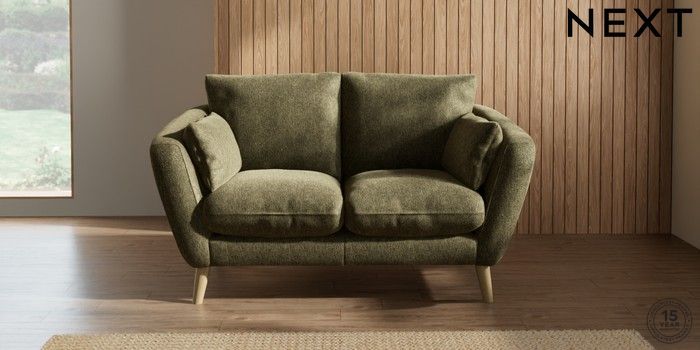 7.2.10 Orlo Relaxed Sit 2 Seater Small Sofa Cotswold Chenille Dark Green Retro Tapered - Light | Made Click here to use our website with more accessibility support, for example screen readers