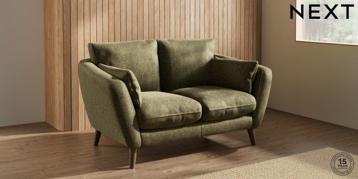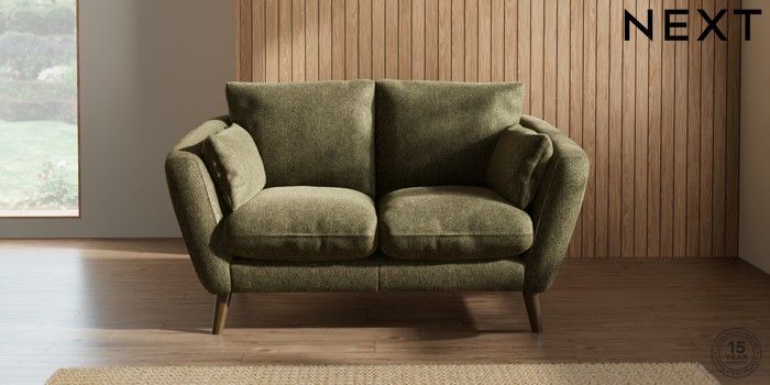 7.2.10 Orlo Relaxed Sit 2 Seater Small Sofa Cotswold Chenille Dark Green Retro Tapered - Mid | Made Click here to use our website with more accessibility support, for example screen readers
