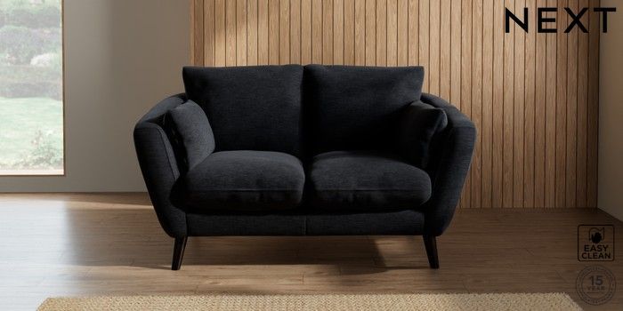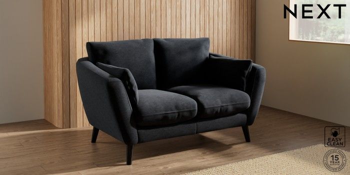 7.2.10 Orlo Relaxed Sit 2 Seater Small Sofa Fine Chenille Easy Clean Black Retro Tapered - Dark | Made Click here to use our website with more accessibility support, for example screen readers