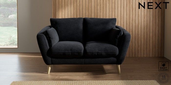 7.2.10 Orlo Relaxed Sit 2 Seater Small Sofa Fine Chenille Easy Clean Black Retro Tapered - Light | Made Click here to use our website with more accessibility support, for example screen readers