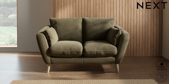 7.2.10 Orlo Relaxed Sit 2 Seater Small Sofa Fine Chenille Easy Clean Dark Moss Green Retro Tapered - Light | Made Click here to use our website with more accessibility support, for example screen readers