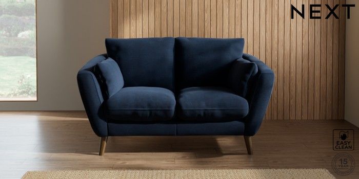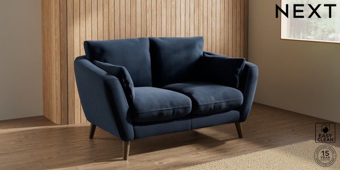 7.2.10 Orlo Relaxed Sit 2 Seater Small Sofa Fine Chenille Easy Clean Dark Navy Blue Retro Tapered - Mid | Made Click here to use our website with more accessibility support, for example screen readers