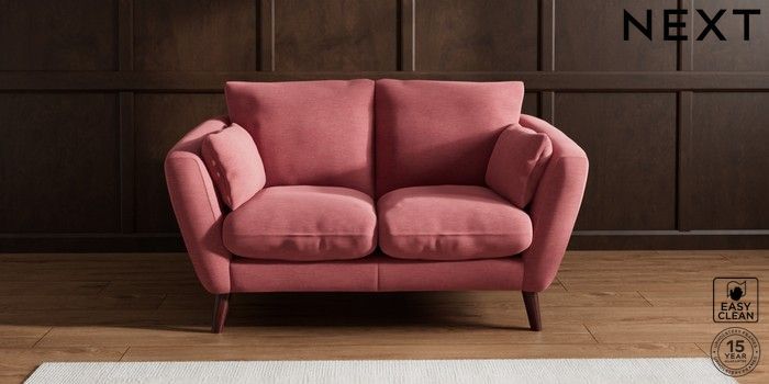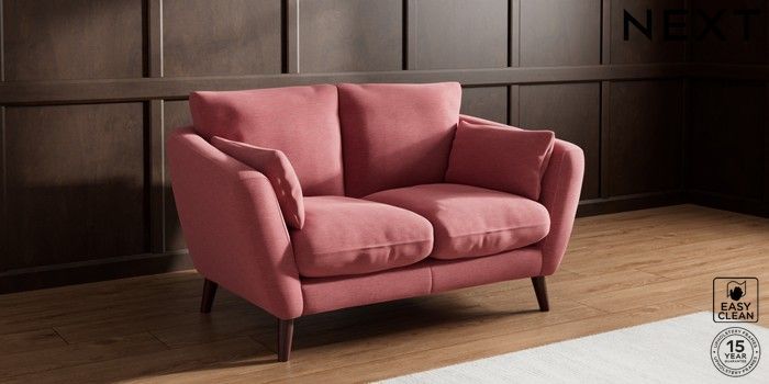 7.2.10 Orlo Relaxed Sit 2 Seater Small Sofa Fine Chenille Easy Clean Mid Pink Retro Tapered - Dark Brown | Made Click here to use our website with more accessibility support, for example screen readers