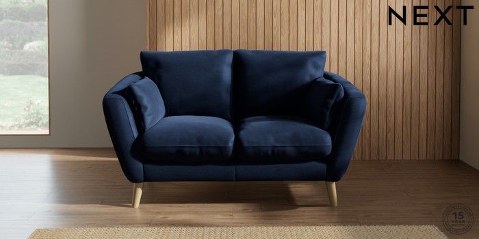 7.2.10 Orlo Relaxed Sit 2 Seater Small Sofa Luxe Chenille Navy Blue Retro Tapered - Light | Made Click here to use our website with more accessibility support, for example screen readers