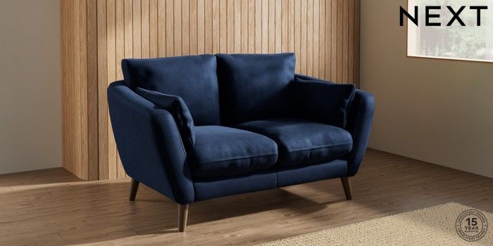7.2.10 Orlo Relaxed Sit 2 Seater Small Sofa Luxe Chenille Navy Blue Retro Tapered - Mid | Made Click here to use our website with more accessibility support, for example screen readers