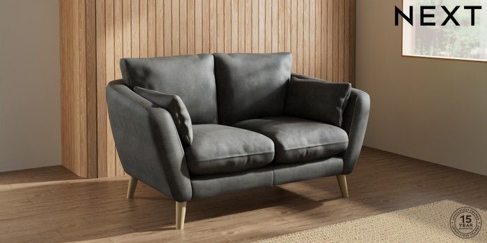 7.2.10 Orlo Relaxed Sit 2 Seater Small Sofa Monza Faux Leather Easy Clean Dark Grey Retro Tapered - Light | Made Click here to use our website with more accessibility support, for example screen readers