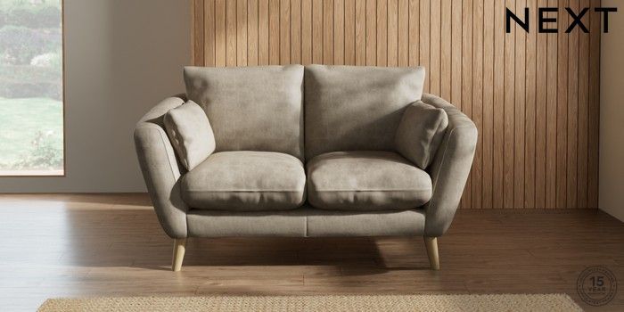 7.2.10 Orlo Relaxed Sit 2 Seater Small Sofa Monza Faux Leather Easy Clean Mink Brown Retro Tapered - Light | Made Click here to use our website with more accessibility support, for example screen readers