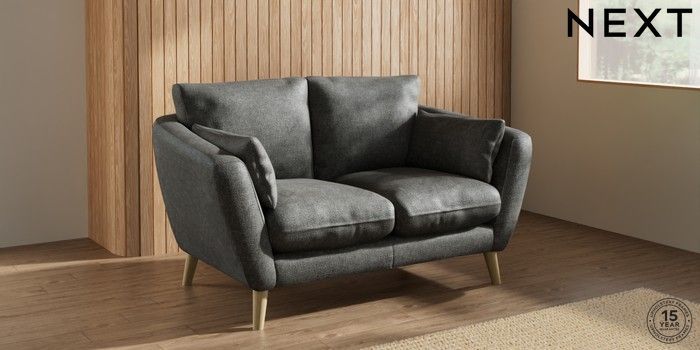7.2.10 Orlo Relaxed Sit 2 Seater Small Sofa Plush Chenille Dark Grey Retro Tapered - Light | Made Click here to use our website with more accessibility support, for example screen readers