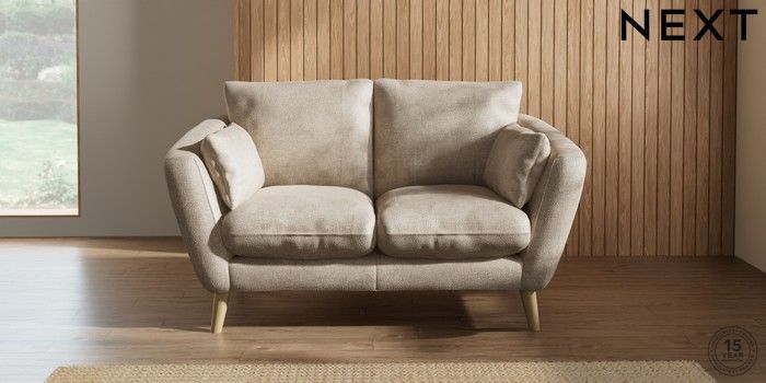 7.2.10 Orlo Relaxed Sit 2 Seater Small Sofa Plush Chenille Light Natural Retro Tapered - Light | Made Click here to use our website with more accessibility support, for example screen readers