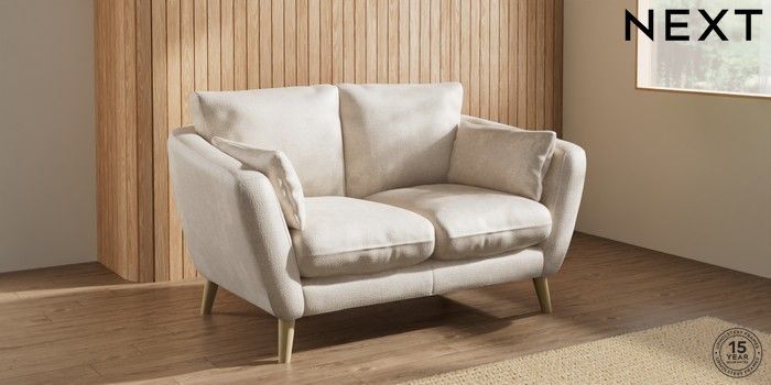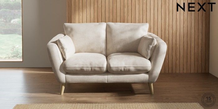 7.2.10 Orlo Relaxed Sit 2 Seater Small Sofa Plush Chenille Oyster Retro Tapered - Light | Made Click here to use our website with more accessibility support, for example screen readers