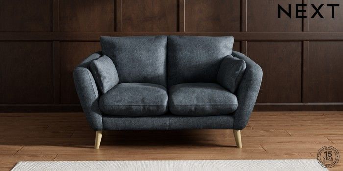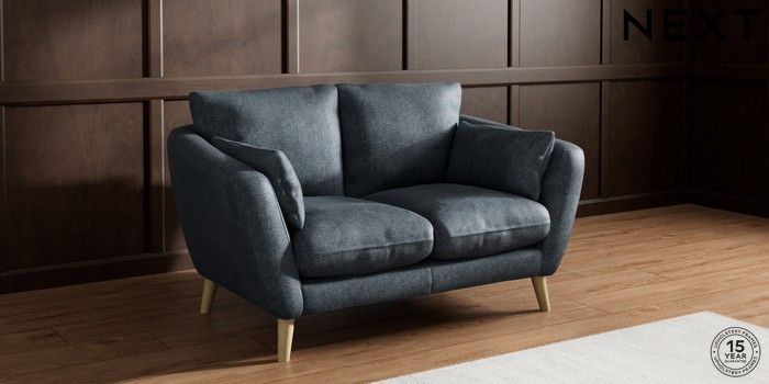 7.2.10 Orlo Relaxed Sit 2 Seater Small Sofa Plush Chenille Slate Blue Retro Tapered - Light | Made Click here to use our website with more accessibility support, for example screen readers