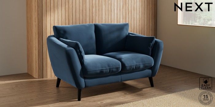7.2.10 Orlo Relaxed Sit 2 Seater Small Sofa Plush Velvet Easy Clean Airforce Blue Retro Tapered - Dark | Made Click here to use our website with more accessibility support, for example screen readers