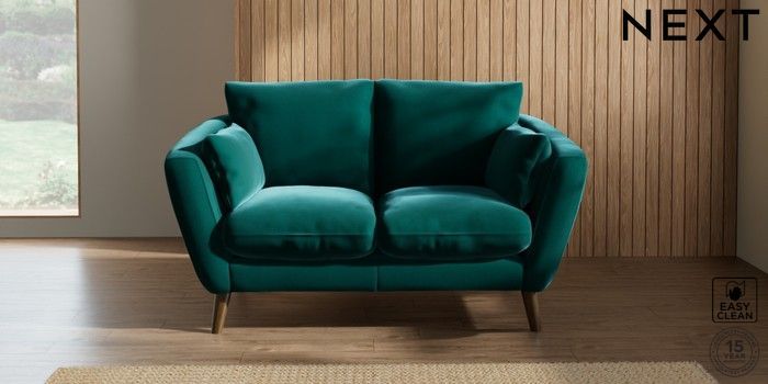 7.2.10 Orlo Relaxed Sit 2 Seater Small Sofa Plush Velvet Easy Clean Juniper Green Retro Tapered - Mid | Made Click here to use our website with more accessibility support, for example screen readers