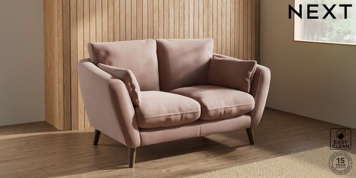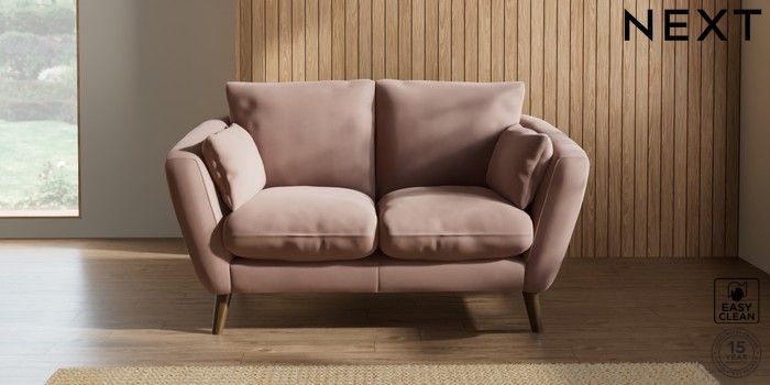 7.2.10 Orlo Relaxed Sit 2 Seater Small Sofa Plush Velvet Easy Clean Mid Natural Retro Tapered - Mid | Made Click here to use our website with more accessibility support, for example screen readers
