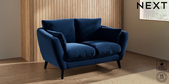 7.2.10 Orlo Relaxed Sit 2 Seater Small Sofa Plush Velvet Easy Clean Navy Blue Retro Tapered - Dark | Made Click here to use our website with more accessibility support, for example screen readers