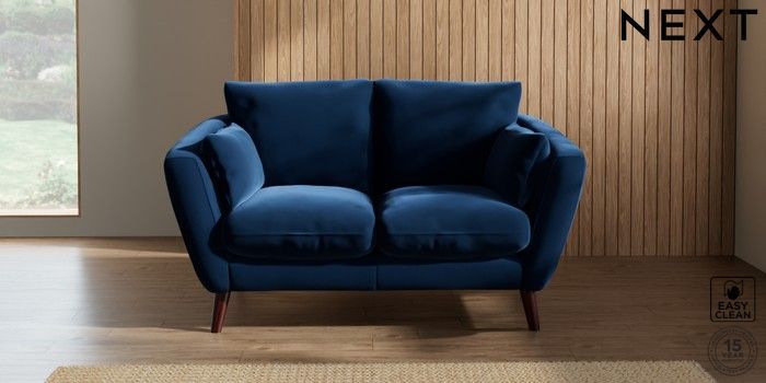 7.2.10 Orlo Relaxed Sit 2 Seater Small Sofa Plush Velvet Easy Clean Navy Blue Retro Tapered - Dark Brown | Made Click here to use our website with more accessibility support, for example screen readers