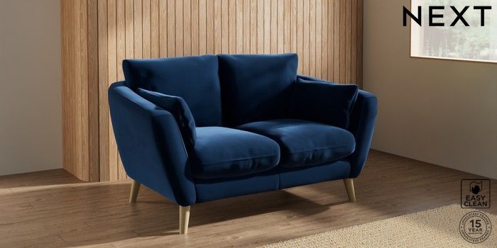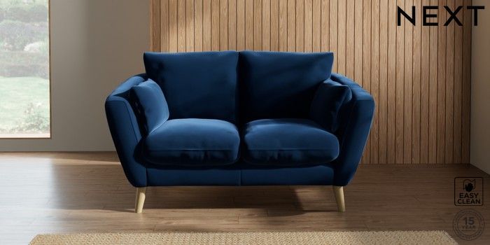 7.2.10 Orlo Relaxed Sit 2 Seater Small Sofa Plush Velvet Easy Clean Navy Blue Retro Tapered - Light | Made Click here to use our website with more accessibility support, for example screen readers