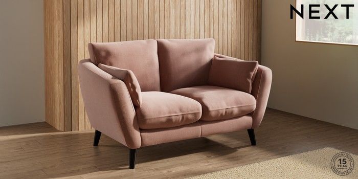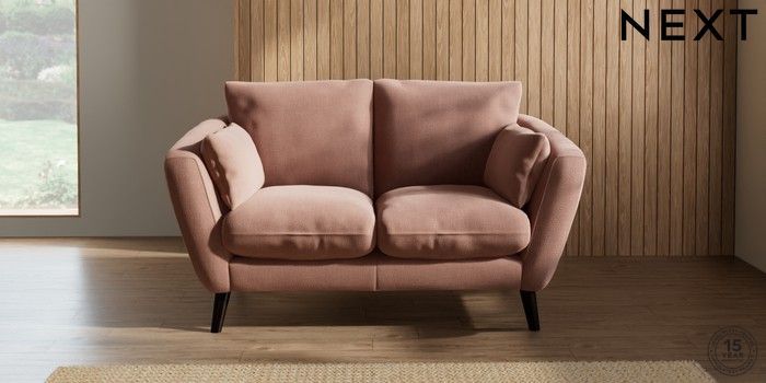 7.2.10 Orlo Relaxed Sit 2 Seater Small Sofa Relaxed Linen Look Light Rust Brown Retro Tapered - Dark | Made Click here to use our website with more accessibility support, for example screen readers