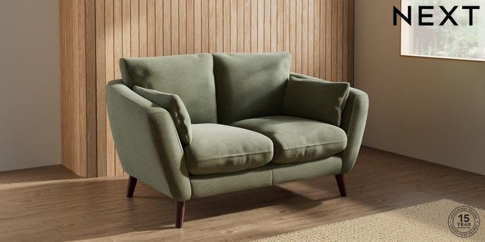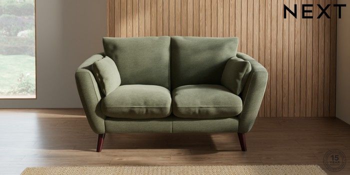 7.2.10 Orlo Relaxed Sit 2 Seater Small Sofa Ripple Chenille Mid Moss Green Retro Tapered - Dark Brown | Made Click here to use our website with more accessibility support, for example screen readers
