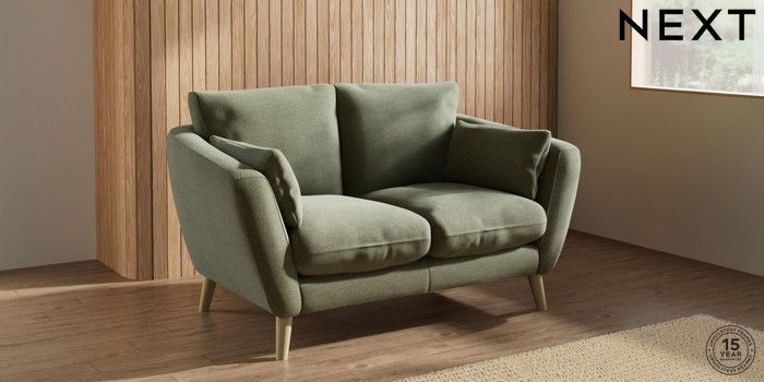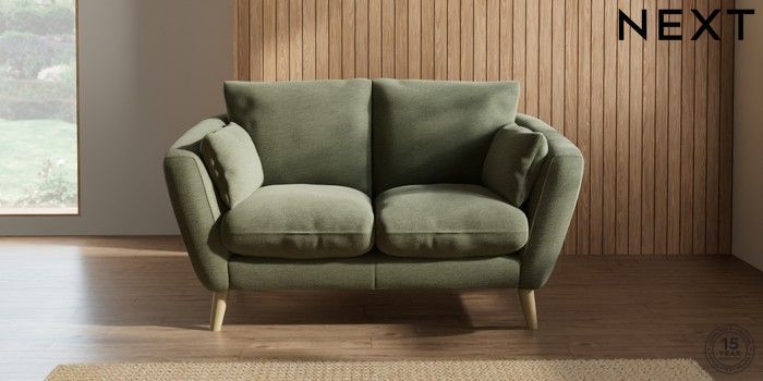 7.2.10 Orlo Relaxed Sit 2 Seater Small Sofa Ripple Chenille Mid Moss Green Retro Tapered - Light | Made Click here to use our website with more accessibility support, for example screen readers