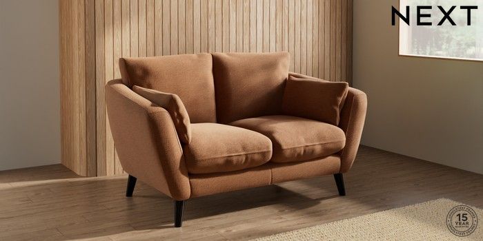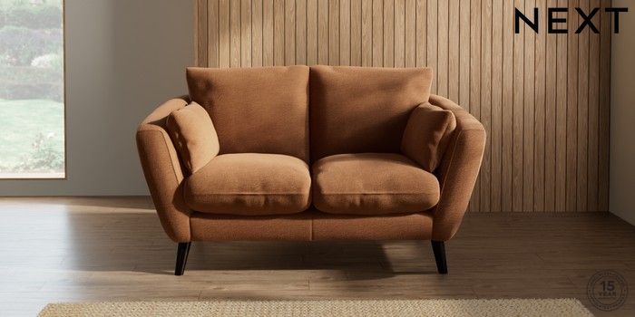 7.2.10 Orlo Relaxed Sit 2 Seater Small Sofa Ripple Chenille Mid Rust Brown Retro Tapered - Dark | Made Click here to use our website with more accessibility support, for example screen readers