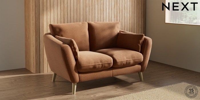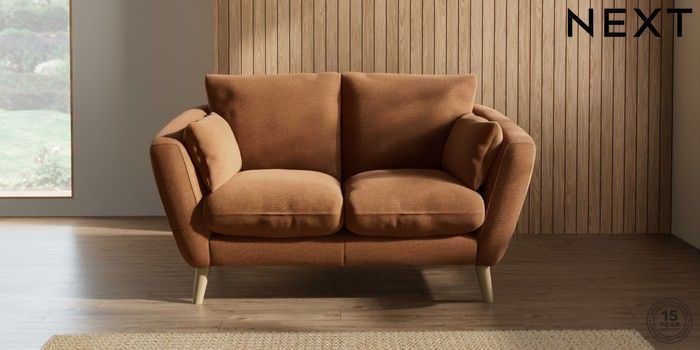 7.2.10 Orlo Relaxed Sit 2 Seater Small Sofa Ripple Chenille Mid Rust Brown Retro Tapered - Light | Made Click here to use our website with more accessibility support, for example screen readers