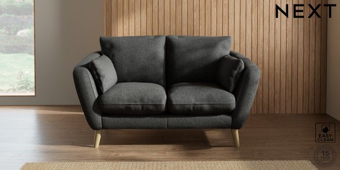 7.2.10 Orlo Relaxed Sit 2 Seater Small Sofa Tweedy Blend Easy Clean Charcoal Grey Retro Tapered - Light | Made Click here to use our website with more accessibility support, for example screen readers
