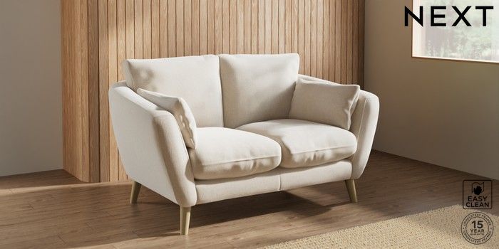 7.2.10 Orlo Relaxed Sit 2 Seater Small Sofa Tweedy Blend Easy Clean Oyster Retro Tapered - Light | Made Click here to use our website with more accessibility support, for example screen readers