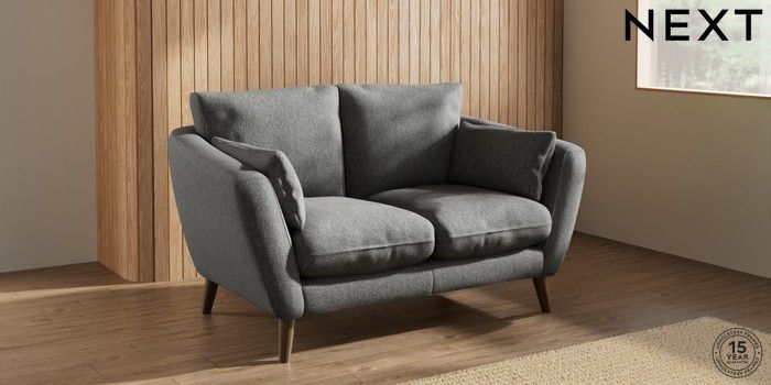 7.2.10 Orlo Relaxed Sit 2 Seater Small Sofa Tweedy Chenille Dark Grey Retro Tapered - Mid | Made Click here to use our website with more accessibility support, for example screen readers