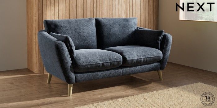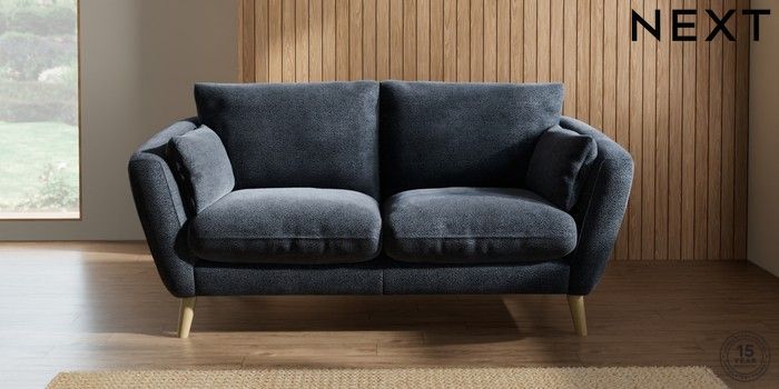 7.2.10 Orlo Relaxed Sit 3 Seater Small Sofa Boucle Chenille Dark Slate Blue Retro Tapered - Light | Made Click here to use our website with more accessibility support, for example screen readers
