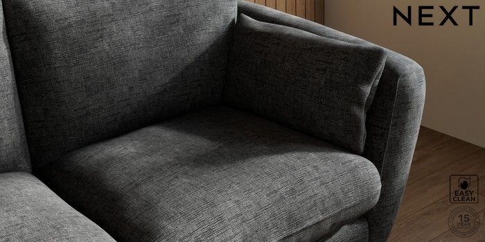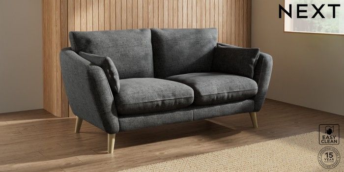 7.2.10 Orlo Relaxed Sit 3 Seater Small Sofa Boucle Weave Easy Clean Charcoal Grey Retro Tapered - Light | Made Click here to use our website with more accessibility support, for example screen readers