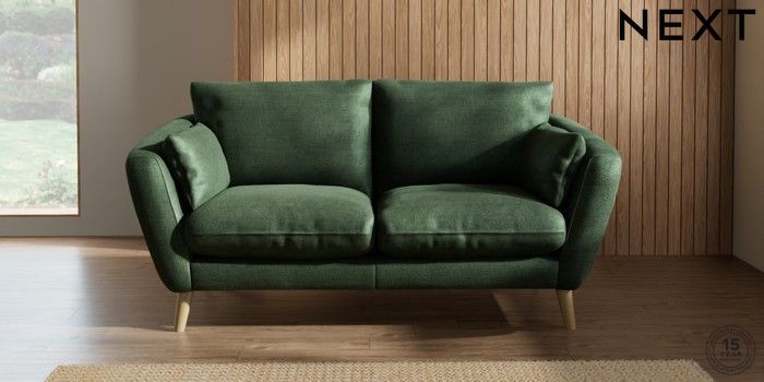7.2.10 Orlo Relaxed Sit 3 Seater Small Sofa Luxe Chenille Dark Green Retro Tapered - Light | Made Click here to use our website with more accessibility support, for example screen readers