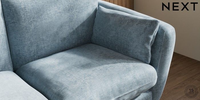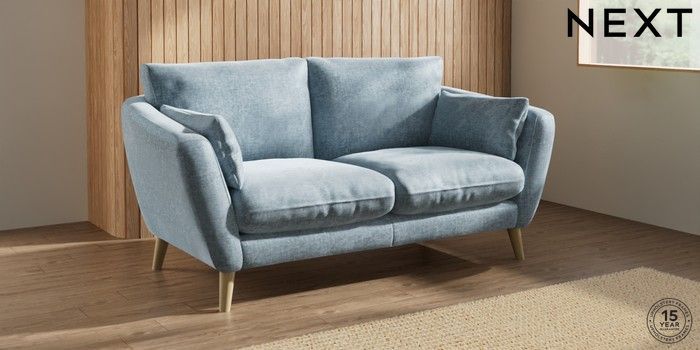 7.2.10 Orlo Relaxed Sit 3 Seater Small Sofa Plush Chenille Light Blue Retro Tapered - Light | Made Click here to use our website with more accessibility support, for example screen readers