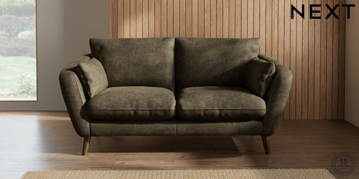 7.2.10 Orlo Relaxed Sit 3 Seater Small Sofa Plush Chenille Moss Green Retro Tapered - Mid | Made Click here to use our website with more accessibility support, for example screen readers