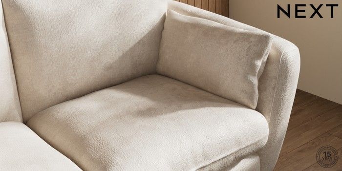 7.2.10 Orlo Relaxed Sit 3 Seater Small Sofa Plush Chenille Oyster Retro Tapered - Light | Made Click here to use our website with more accessibility support, for example screen readers