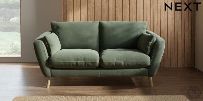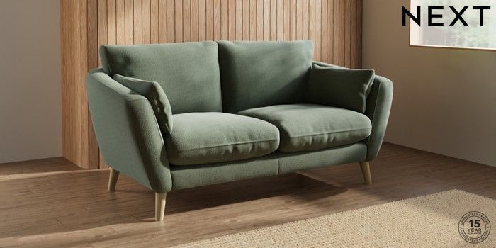 7.2.10 Orlo Relaxed Sit 3 Seater Small Sofa Relaxed Linen Look Dark Green Retro Tapered - Light | Made Click here to use our website with more accessibility support, for example screen readers