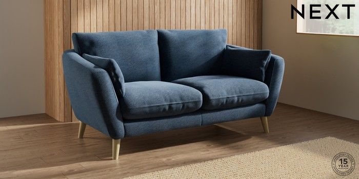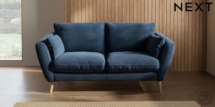 7.2.10 Orlo Relaxed Sit 3 Seater Small Sofa Ripple Chenille Dark Blue Retro Tapered - Light | Made Click here to use our website with more accessibility support, for example screen readers