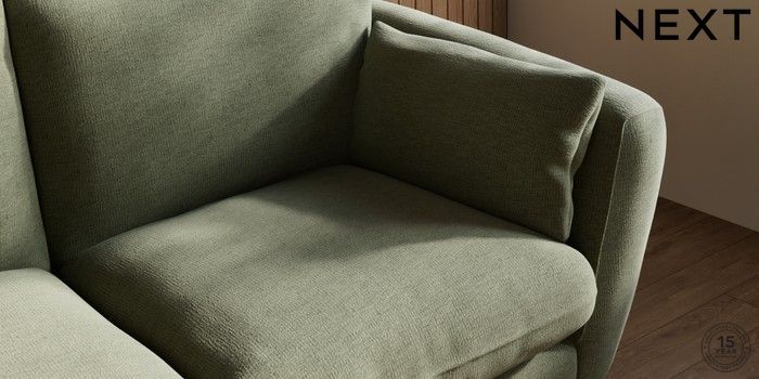 7.2.10 Orlo Relaxed Sit 3 Seater Small Sofa Ripple Chenille Mid Moss Green Retro Tapered - Light | Made Click here to use our website with more accessibility support, for example screen readers