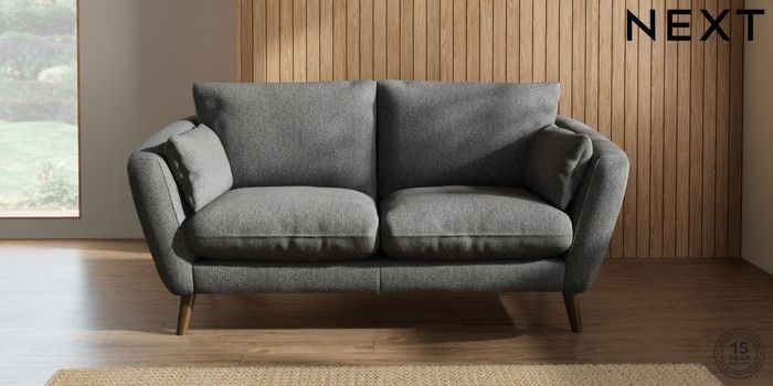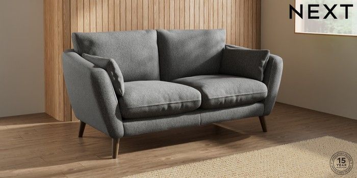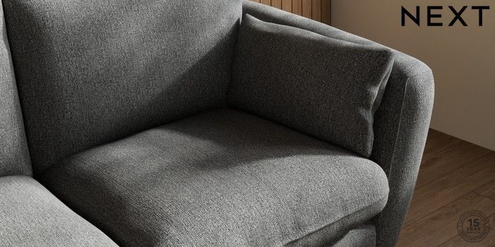 7.2.10 Orlo Relaxed Sit 3 Seater Small Sofa Tweedy Chenille Dark Grey Retro Tapered - Mid | Made Click here to use our website with more accessibility support, for example screen readers