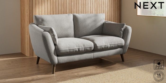 7.2.10 Orlo Relaxed Sit 3 Seater Small Sofa Woven Chenille Easy Clean Light Grey Retro Tapered - Mid | Made Click here to use our website with more accessibility support, for example screen readers